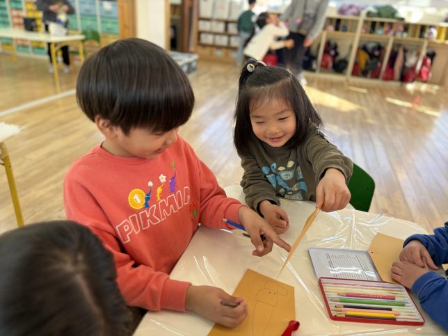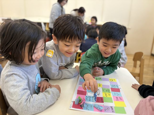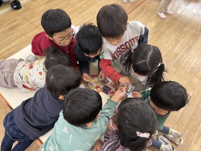 子どもたちの遊んでいる様子を見るといつでもうさぎになれ、パンダになれ、お母さんにも赤ちゃんにもなれます。何度も飽きもせず、くり返し同じことをし、くり返し叱られ、へこたれません。工夫次第でもっと効率的に遊べるのに、と大人の私達は思っても、遠回りをし汗だくになり夢中で取り組みます。仲間に入れて欲しくて陰でそっとシールを渡したり…。「もう一生遊ばない!」と言いながら翌日いつも通りに遊ぶ。さまざまな姿があり、大人には到底真似できない柔軟性や素直さを持っています。