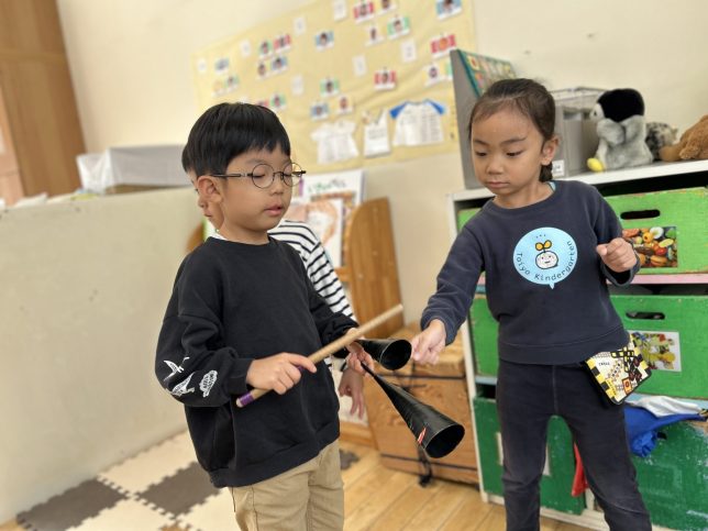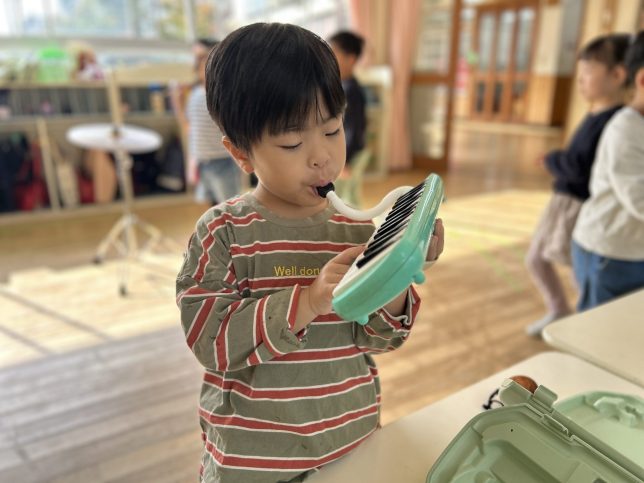 さて、今回は、自分の好きな楽器に出会うための楽器遊びの様子を写真でご紹介します。