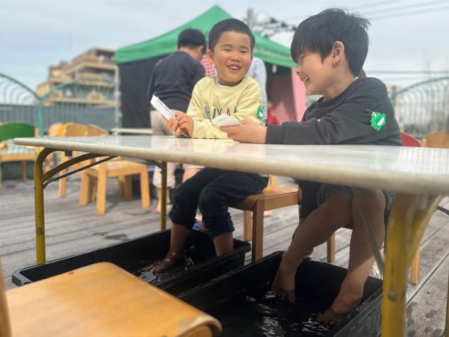大人気の足湯コーナー♨奥のテントはサウナとのこと⛺